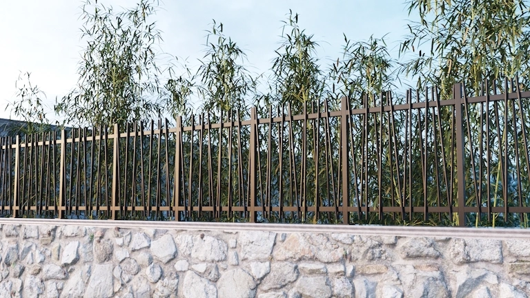 Clôture Bambou au design moderne en acier. Ce modèle apportera une touche d’originalité à vos extérieurs.
