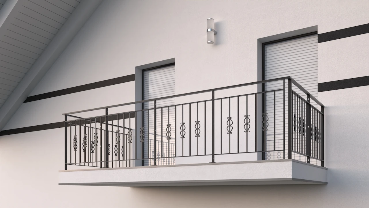 Garde-corps 2 Vases au design moderne en fer forgé. Ce modèle apportera sécurité et originalité à tous vos projets de terrasses et d’aménagement.
