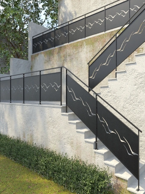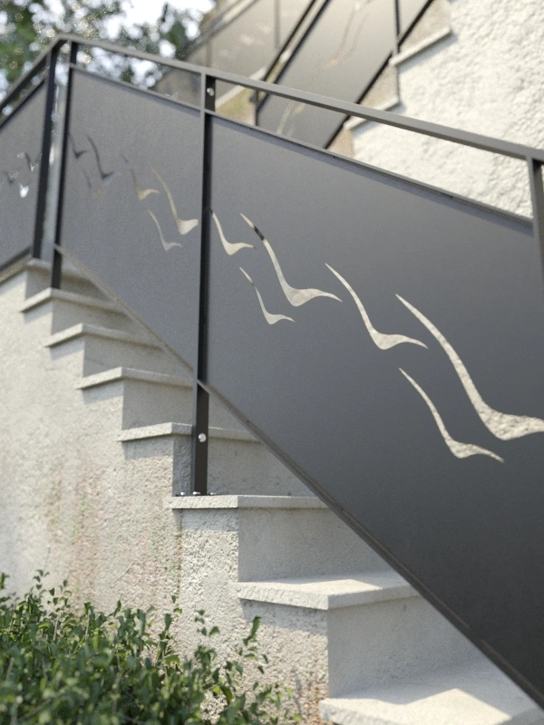 Le design des rambardes Ailes en fer forgé allie durabilité et élégance grâce à son design contemporain qui donnera une touche moderne à vos escaliers en garantissant sécurité et résistance à l’épreuve du temps.